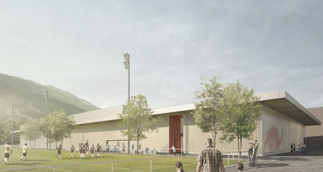 Inzwischen wurde das Bauprojekt erarbeitet. Darin enthalten sind diverse zwischenzeitlich erfolgte Projektanpassungen am Tribünengebäude: Die Dachfläche wurde vergrössert, die Tribüne verglast und ein zusätzlicher Clubraum eingeplant. Zudem wurden alle Garderoben so angepasst, dass sie dem Standard der 1. Liga entsprechen. Trotz dieser wichtigen Anpassungen werden die an der Volksabstimmung genehmigten Investitionskosten eingehalten. Das Baugesuch wurde Anfang Mai 2020 eingereicht, die erforderliche Baubewilligung soll bis Spätsommer 2020 vorliegen. Der Spatenstich ist für Ende Oktober 2020 vorgesehen.