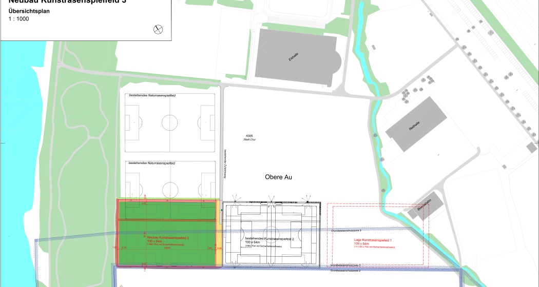 An der Gemeinderatssitzung vom 8. März 2018 wurde die Botschaft "Kunstrasenplatz KR3" genehmigt und der Kredit von Fr. 2'380'000.-- freigegeben. Der Masterplan Sport- und Eventanla-gen Obere Au sieht total drei Kunstrasenplätze vor. Der Kunstrasenplatz KR3 ist der zweite Kunstrasenplatz, welcher gemäss Masterplan realisiert wird. Die Inbetriebnahme ist für anfangs November 2018 geplant.