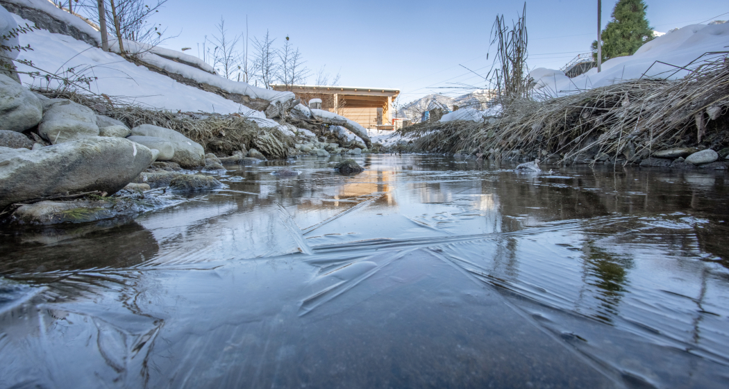 The Obertorer Mühlbach stream was relocated over a length of about 550 m. The course of the stream begins at the end of the intersection Rossboden- / Pulvermühlestrasse and ends at the bus stop at Oberen Au. Water is flowing through the ecologically designed, renaturalised riverbed since mid-April 2019. The amount of water has been reduced and the stream can therefore also be entered. Best place to enter it is at the Kneipp water-treading basin near the boccia facility.